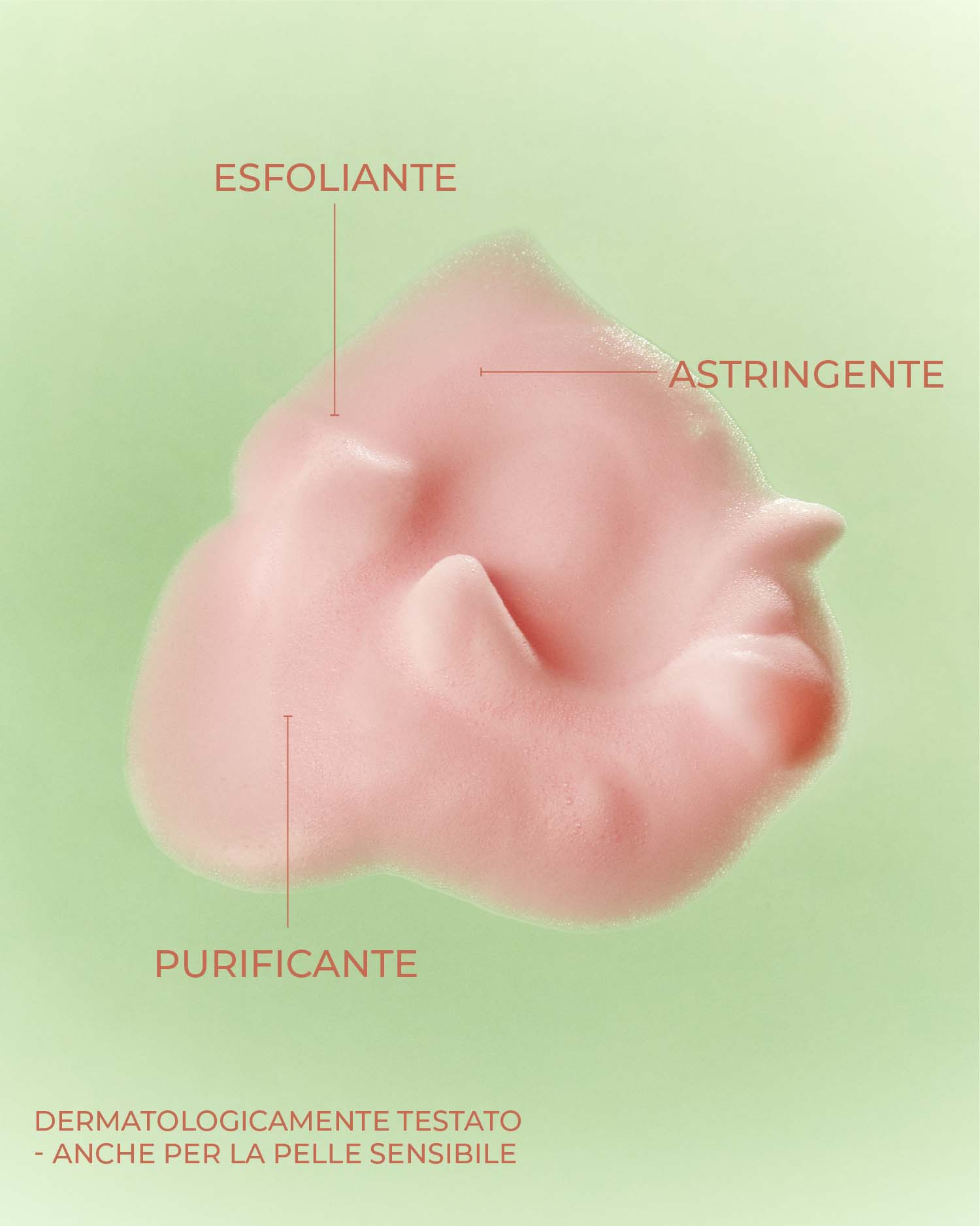 • Purificantel'acido salicilico naturale pulisce in profondità i pori senza seccare la pelle, grazie al pH neutro del prodotto.