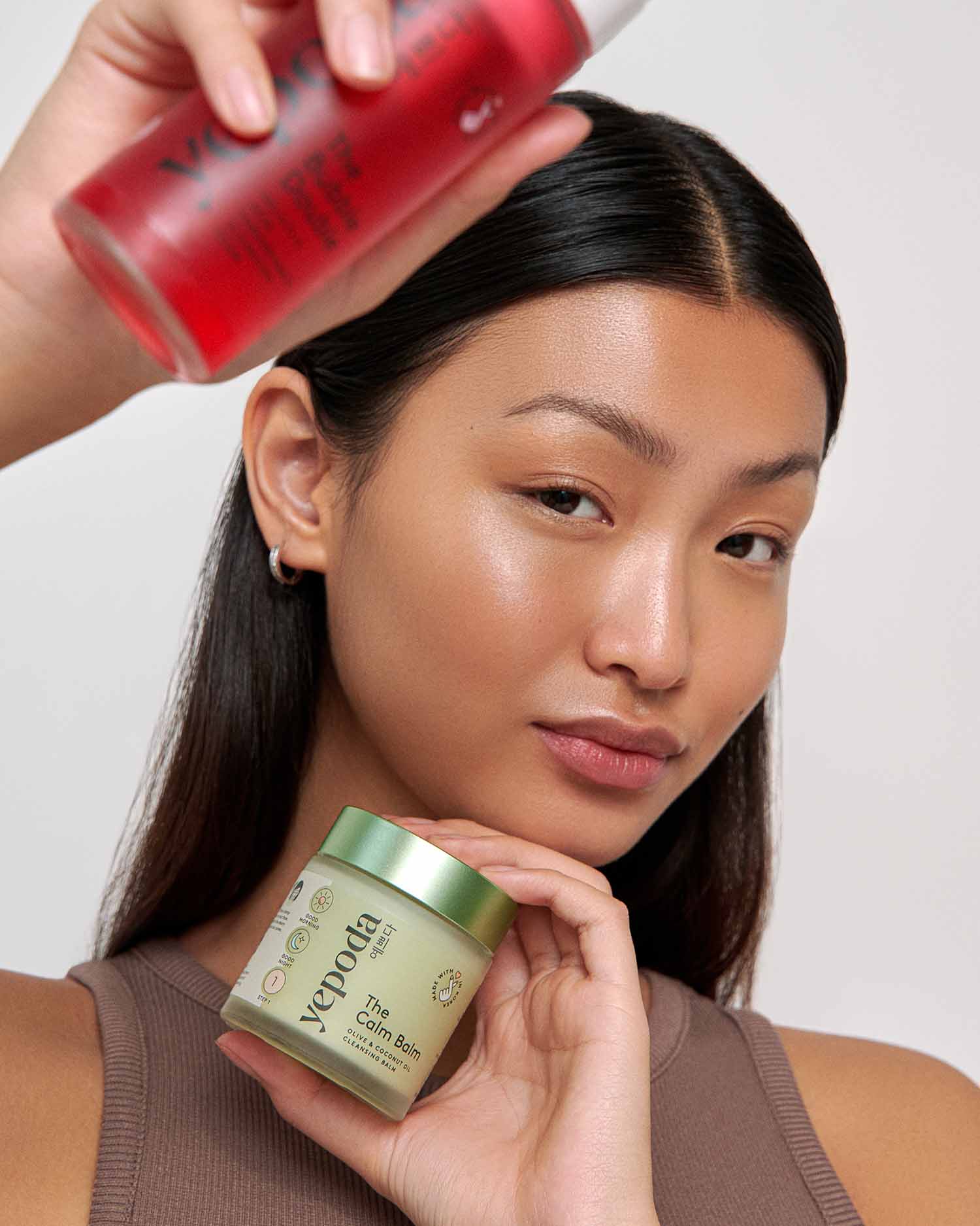 • The Calm Balm: balsamo detergente con olio di cocco e di oliva per rimuovere trucco, sebo e impurità.