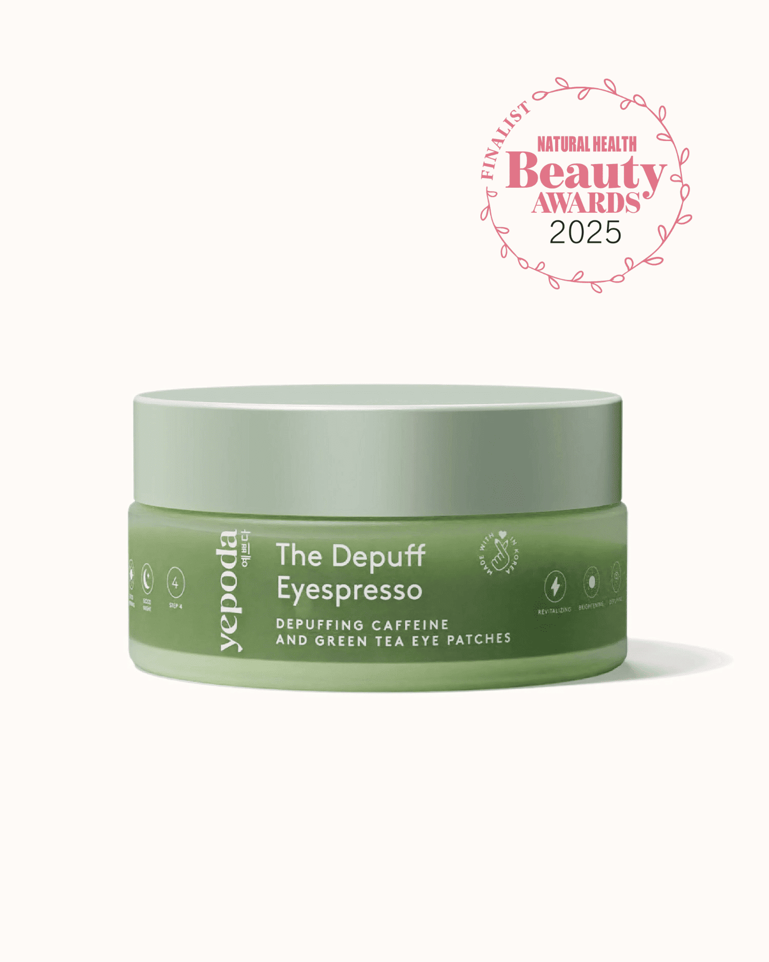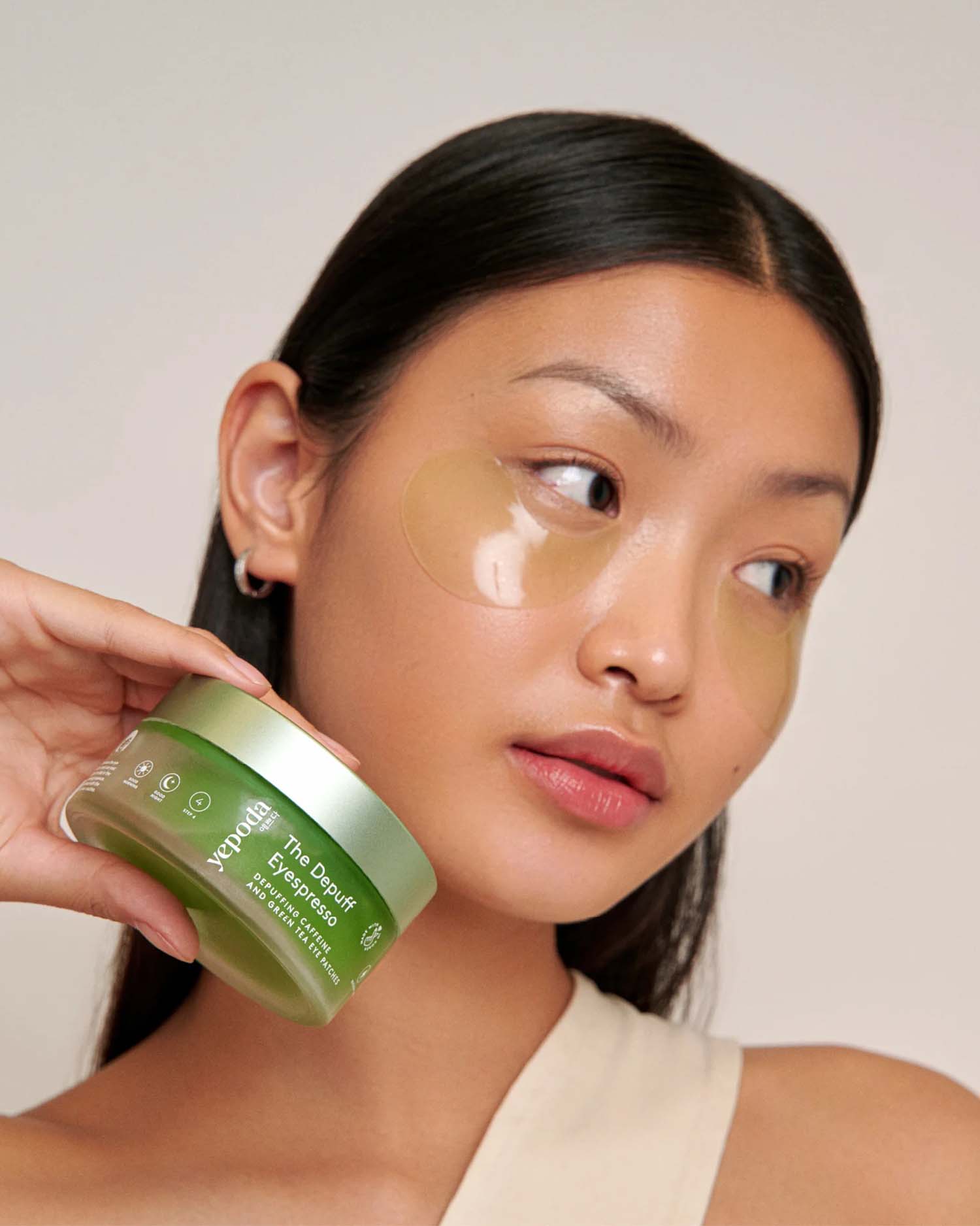 The Depuff Eyespresso è progettato per ridurre al minimo l'impatto ambientale, grazie al packaging in vetro e al materiale biodegradabile composto da alghe e gomma di origine naturale. Ciascun barattolo, contenente 30 paia di patch contorno occhi, può durare fino a due mesi e mezzo, applicandoli tre volte a settimana.