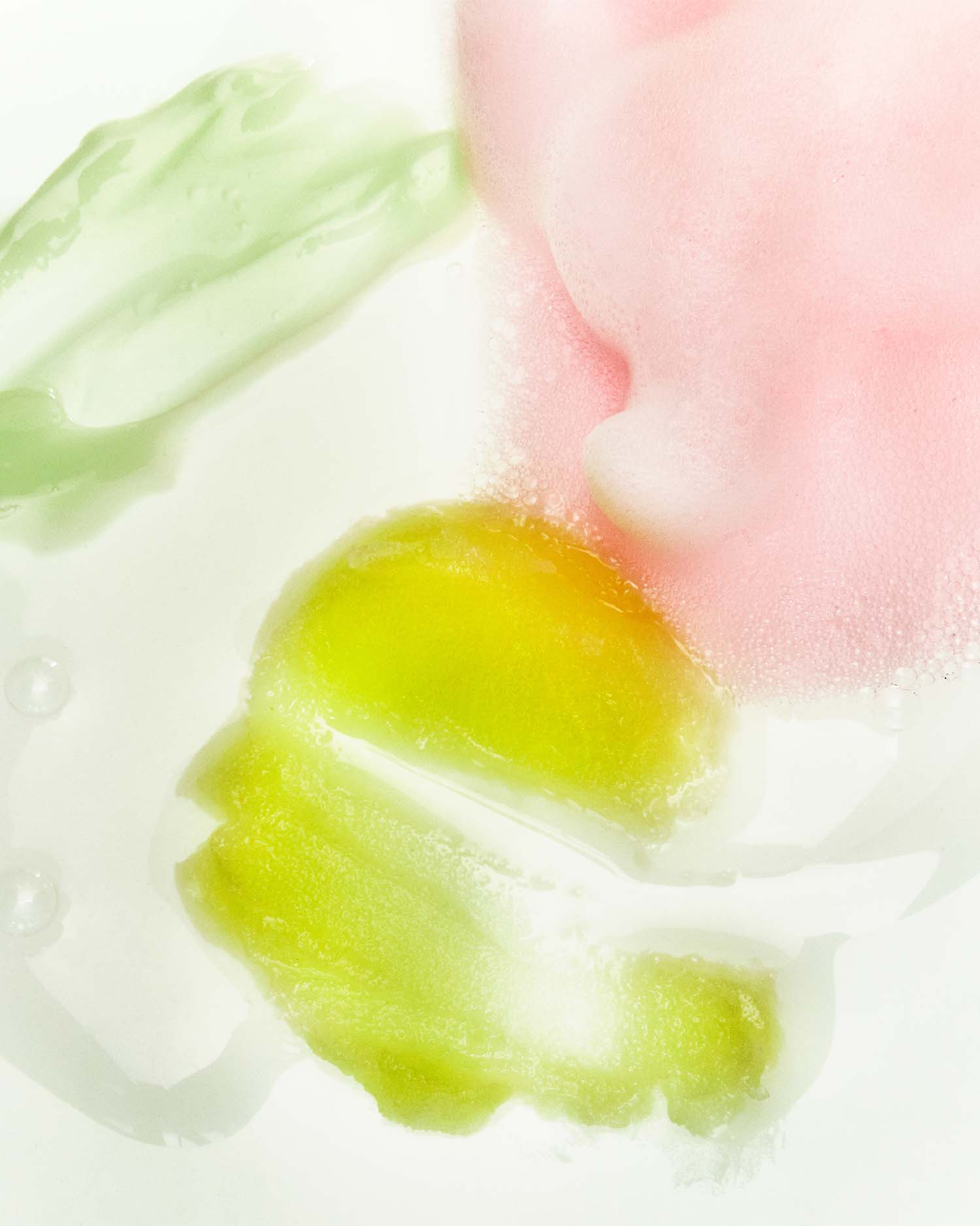 • The Bubble Double: schiuma detergente a base di acido salicilico e melograno per detergere a fondo i pori e prevenire la comparsa di nuove impurità.
