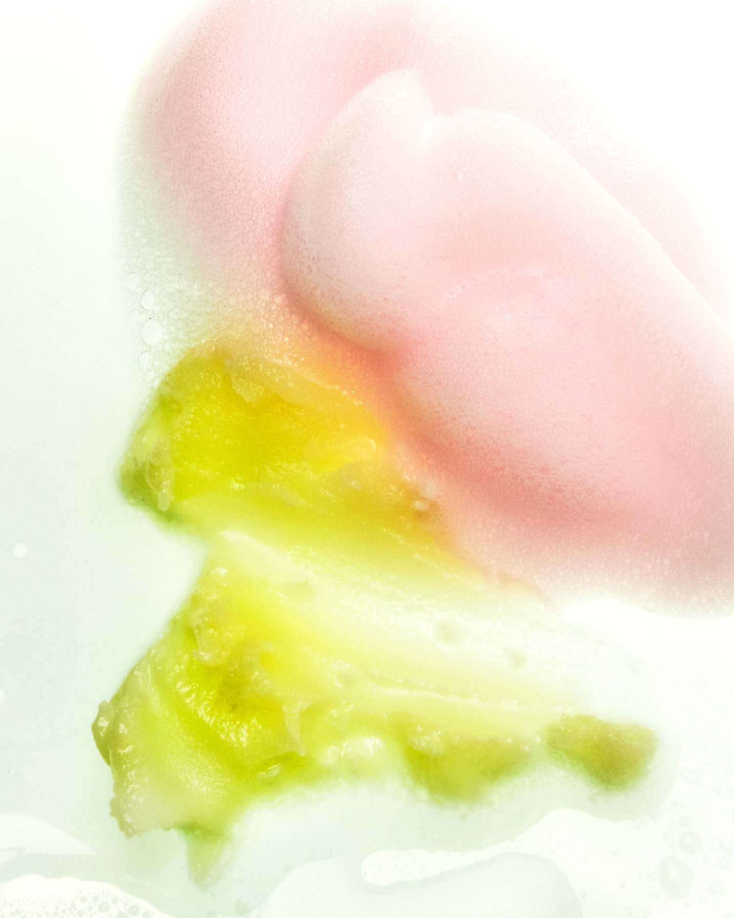 • The Mini Bubble Double: schiuma detergente a base di acido salicilico e melograno per detergere a fondo i pori e prevenire la comparsa di nuove impurità.