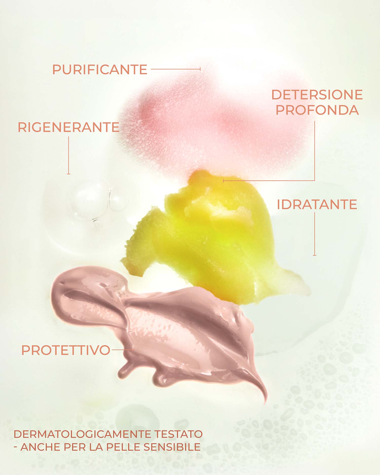 • Senza sostanze nocive: senza siliconi, parabeni, PEG, microplastiche, oli minerali, formaldeide, coloranti artificiali, solfati, alcol secco.
